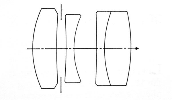 Col classico disegno Elmar di 4 lenti in 3 gruppi pesa 345g, con