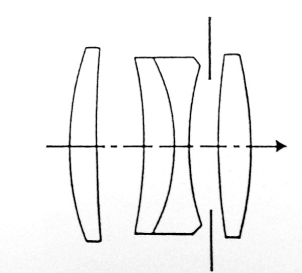 Lo schema ottico è il classico 4 lenti in 3 gruppi, tanto caro al progettista Max Berek, concettualmente simile all’Elmar ma col doppietto collato disposto in posizione centrale